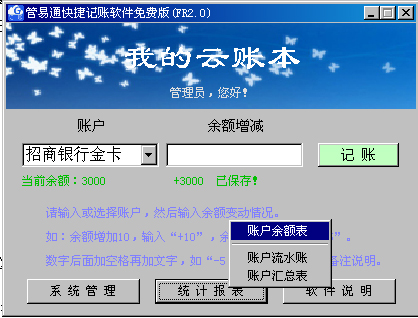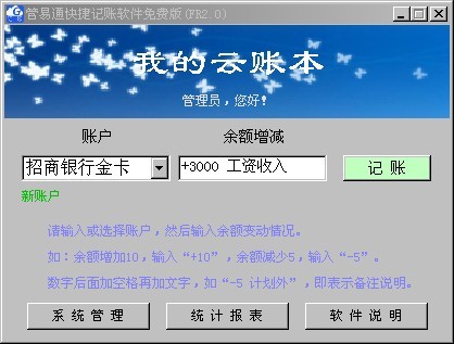 也就是說(shuō),我們日常工作生活中遇到的基本帳目(只涉及數量、錢(qián)款、記數增減的流水賬)都可以用本軟件來(lái)管理。