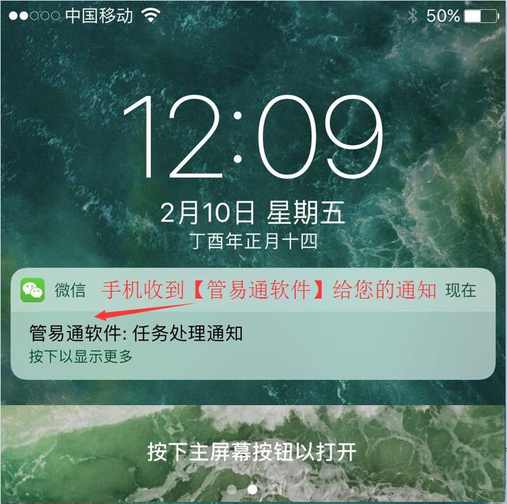 并且同時(shí)給您的微信發(fā)送一條通知。在您手機上,幾秒鐘內就可以收到這個(gè)通知。如下圖:
