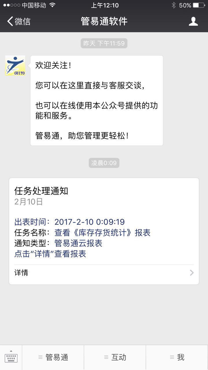 點(diǎn)擊這里在線(xiàn)咨詢(xún) 《管易通云報表升級版》也稱(chēng)為“微信云報表”,即可以在微信上方便的接收、查看管易通軟件輸出的報表。
