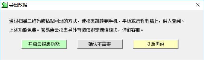 點(diǎn)擊“開(kāi)啟云報表功能”之后,系統會(huì )彈出提示,再次點(diǎn)擊“導出”按鈕,會(huì )出現: