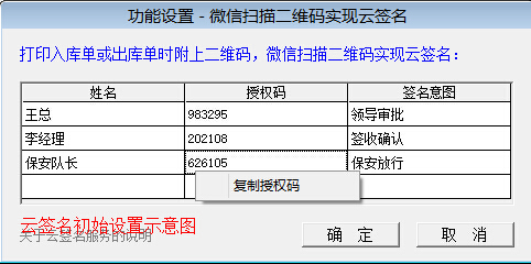 姓名及意圖輸入完成后,系統將自動(dòng)生成“授權碼”,該授權碼需要保密,只告知“王總”一個(gè)人,在首次使用微信掃碼時(shí),需要輸入授權碼。