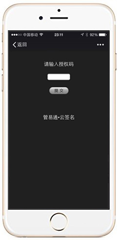 如果王總是第一次使用云簽名功能,則會(huì )彈出如下界面,要求輸入授權碼。
