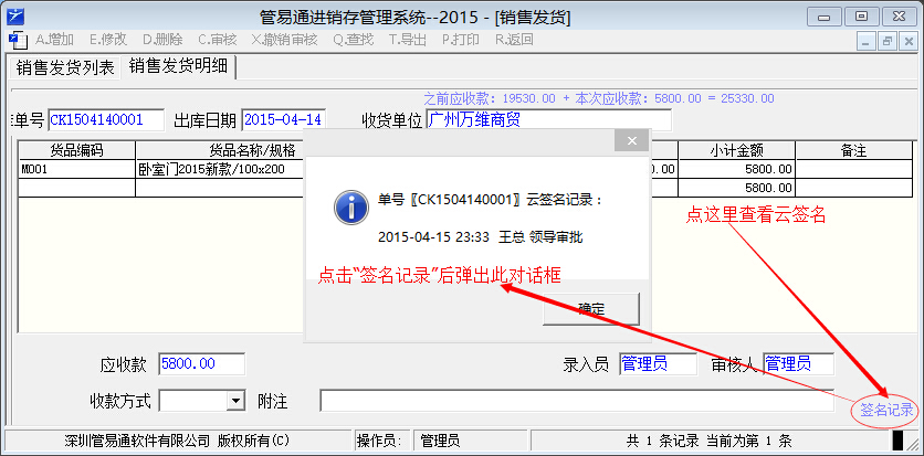 在電腦上的單據界面,右下角,有“云簽名記錄”幾個(gè)字。