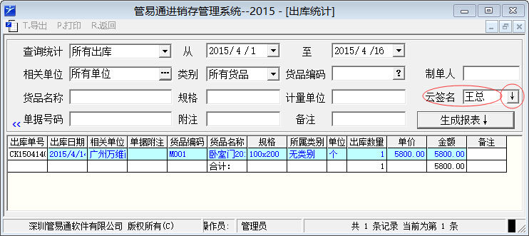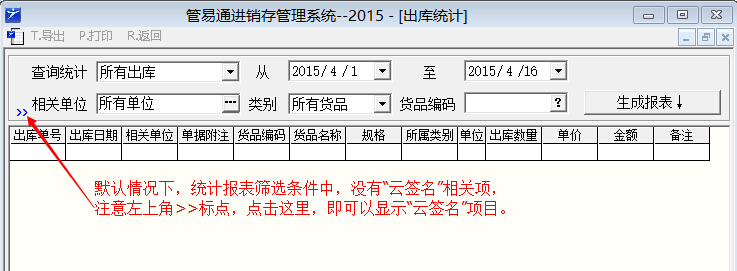 除了在單據列表界面可以按云簽名篩選查找記錄以外,我們還可以在入庫統計表、出庫統計表中,根據云簽名記錄篩選查找生成相應的報表。